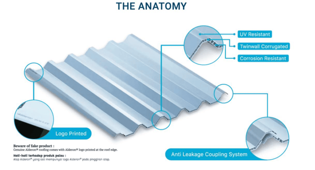 We will use Twin Wall Corrugated Alderon 860 doff for the rooftop. We will use Weather Seal screws from Alderon. Installation of Alderon is perpendicular to purlin.