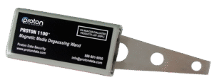 A physical process using a very strong magnetic field to demagnetize magnetic storage media (such as traditional hard drives or magnetic tape), permanently erasing the stored data and rendering it unreadable.
