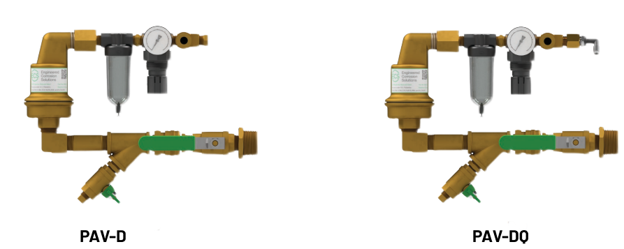 The ECS Protector Vent (PAV-D/DQ) provides oxygen venting in dry pipe fire sprinkler systems. As a fire sprinkler system is filled with a continuous supply of nitrogen gas from the ECS AdvancedIQ Nitrogen Generator System, the PAV-D/DQ allows oxygen rich gas to be vented from the fire sprinkler system. Over a short period of time (typically less than 14 days) the ECS Protector Vent will almost completely remove oxygen from the fire sprinkler system (<2% oxygen).